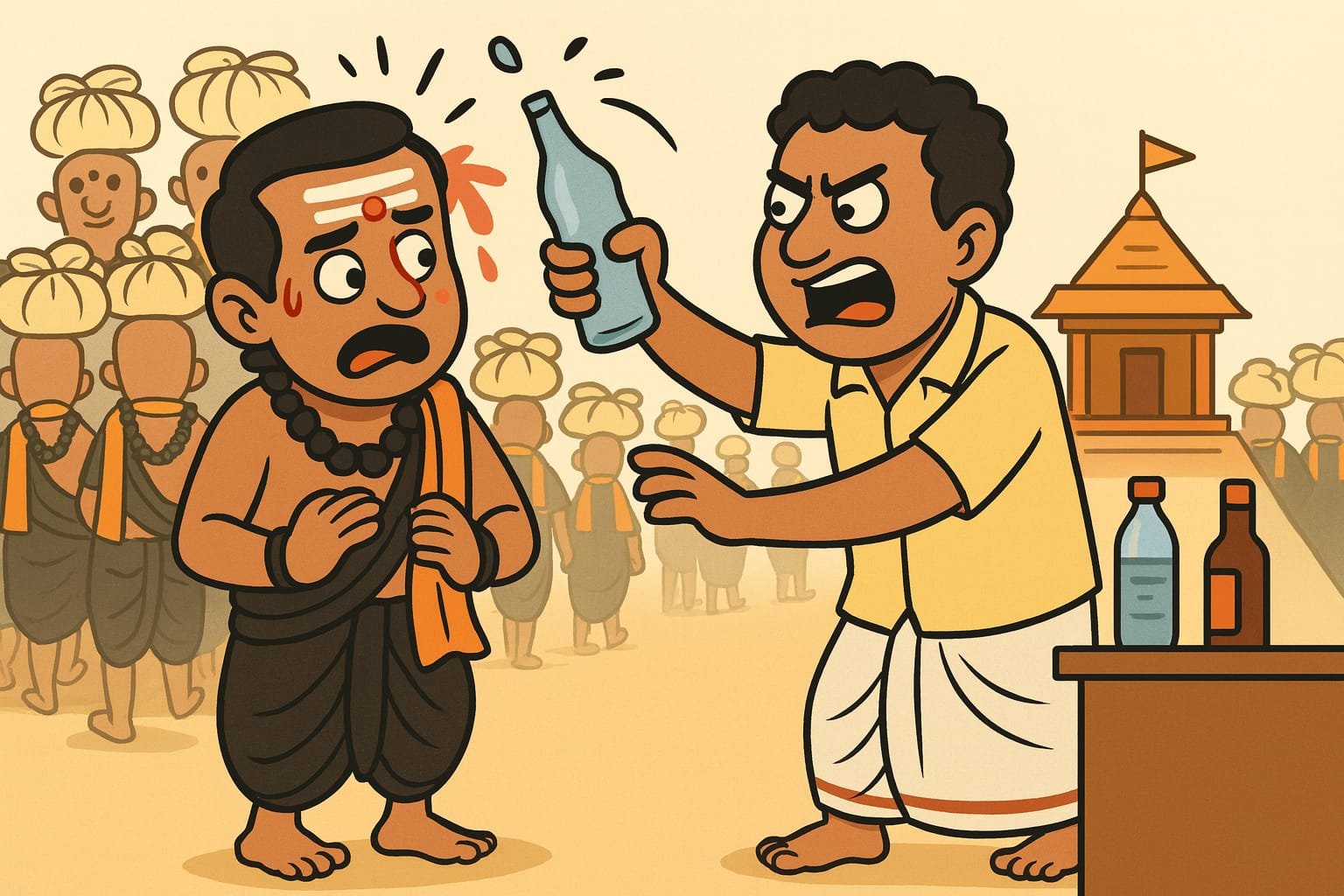 గాజు సీసాతో దాడి – భక్తుడికి తీవ్ర గాయాలు