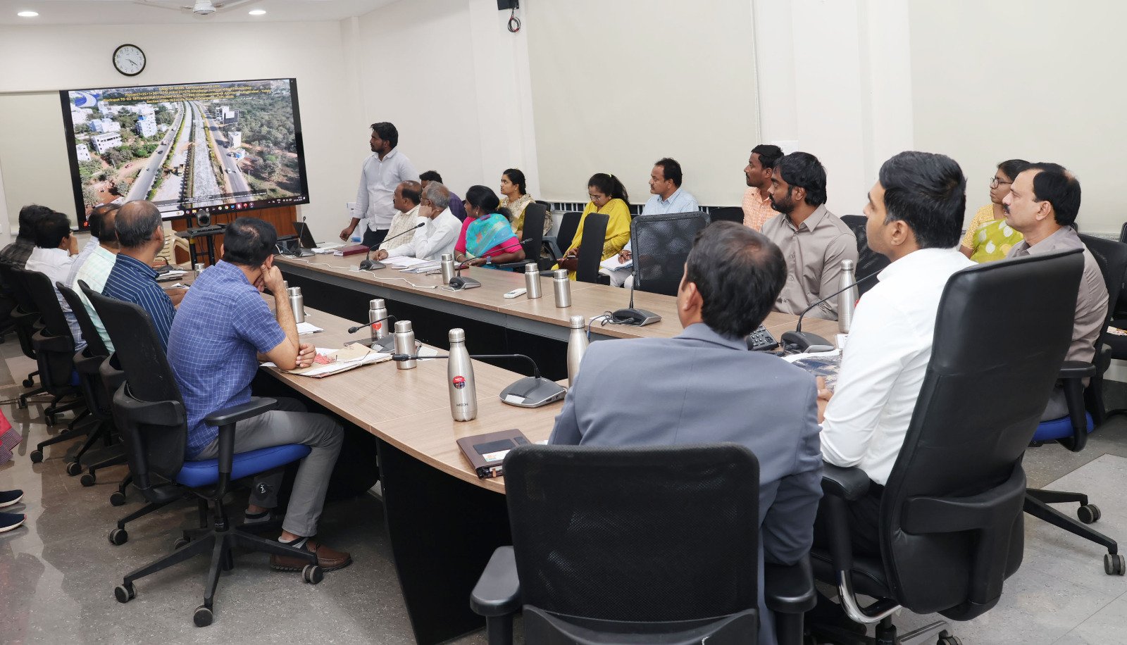 మేడ్చల్ మల్కాజిగిరి జిల్లాలోని జాతీయ ర‌హ‌దారుల నిర్మాణానికి సంబంధించి నిర్మాణంలో ఉన్న ప్రాజెక్టుల ప‌నులు వేగ‌వంతం చేయాల‌ని ఆయా స‌మ‌స్య‌ల‌ను ప‌రిష్క‌రించాల‌ని సంబంధిత శాఖాధికారుల‌కు జిల్లా కలెక్టర్ మను చౌదరి సూచించారు.బుధవారం కలెక్టరేట్ విసి హాలులో జాతీయ రహాదారుల నిర్మాణాల పై నిర్వహించిన సమీక్ష సమావేశానికి జిల్లా అదనపు కలెక్టర్ విజయేందర్ రెడ్డితో కలిసి జిల్లా కలెక్టర్ హాజరయ్యారు.ఈ సమావేశంలో ఎన్ హెచ్ ఎఐ పిడి పవర్ పాయింట్ ప్రజంటేషన్ ద్వారా సమస్యలను కలెక్టర్ కు వివరించారు. ఈ సందర్భంగా కలెక్టర్ మాట్లాడుతూ జిల్లాలోని జాతీయ ర‌హ‌దారుల నిర్మాణానికి సంబంధించి నిర్మాణంలో ఉన్న ప్రాజెక్టు పనులను వేగవంతం చేయాలని అన్నారు. జాతీయ రహాదారుల నిర్మాణాలకు సంబంధించి రోడ్డు విస్తరణ పై ఉన్న సమస్యలను పవర్ పాయింట్ ప్రజంటేషన్ ద్వారా పరిశీలించారు. రోడ్డు విస్తరణకు సంబంధించిన కోర్టు కేసులను వివరంగా అడిగి తెలుసుకున్నారు. కలెక్టర్ రోడ్డు విస్తరణకు ఎదురవుతున్న సమస్యలను పరిశీలించి ప్రతి కేసు పూర్వపరాలు తెలుసుకొని, తీసుకోవలసిన చర్యల పై అధికారులకు అవసరమైన సలహాలు సూచనలు చేసారు.ఈ కార్యక్రమంలో కీసర ఆర్డిఓ ఉపేందర్ రెడ్డి, సంబంధిత అధికారులు తదితరులు పాల్గొన్నారు.