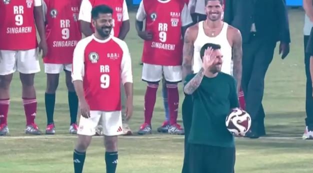 మొదటి గోల్ చేసిన రేవంత్ రెడ్డి… మెస్సీ రెండు గోల్స్