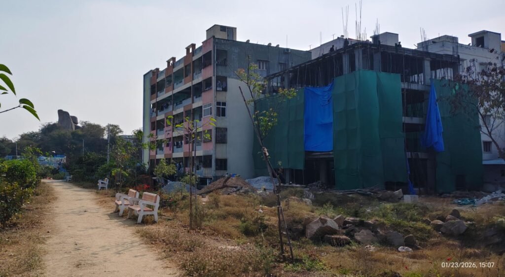 అక్షరగళం, శేరిలింగంపల్లి : అధికారిక సర్వేలో చెరువు భూమిగా తేలింది… ఆ ప్రాంతంలో అక్రమంగా నిర్మాణాలతో చేసుకున్నాయని నివేదికన సైతం రూపొందించారు అధికారులు. అయినప్పటికీ చర్యలు లేకపోవడంతో తప్పుడు ప్లాట్ నెంబర్లు, తప్పుడు సర్వే నెంబర్లను పేర్కొంటూ నిర్మాణానికి దరఖాస్తు చేసుకోవడం… పరిశీలన చేయకుండానే జిహెచ్ఎంసి అధికారులు అనుమతులు విచ్చేయడంతో రంగారెడ్డి జిల్లా శేరిలింగంపల్లి మండలం హఫీజ్ పేట్ సర్వేనెంబర్ 151 లో ఉన్న రేగులకుంట చెరువు, ప్రభుత్వ భూమిలో ప్రస్తుతం మరొక అక్రమ కట్టడం రయ్ రయ్ మంటూ కొనసాగటం ఆందోళన కలిగించే అంశం.