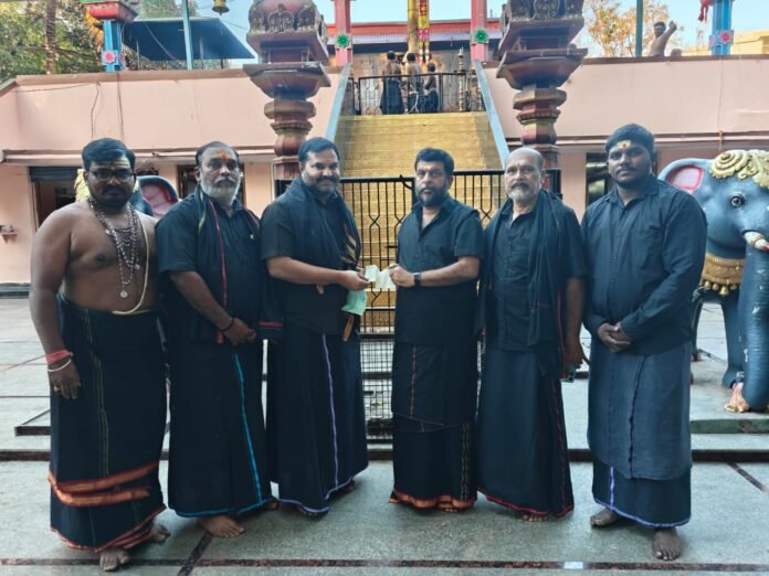కూకట్పల్లి వివేకానంద నగర్ అయ్యప్ప స్వామి దేవస్థాన ప్రాంగణంలో నిర్మాణం జరుగుతున్న శ్రీ కాశీ విశ్వేశ్వర సహిత శ్రీ అన్నపూర్ణేశ్వరి ఆలయ నిర్మాణానికి వివేకానంద నగర్లోని మన హాస్పిటల్ డైరెక్టర్ శ్రీ రామకృష్ణ రెడ్డి గారు అక్షరాల రూ. 2,00,000/- (రెండు లక్షల రూపాయలు) విరాళంగా చెక్కును ఆలయ చైర్మన్ శ్రీ వడ్డేపల్లి రాజేశ్వరరావు గారికి ఈరోజు అందజేశారు.ఈ సందర్భంగా శ్రీ రాజేశ్వరరావు గారు మాట్లాడుతూ, ఆలయ నిర్మాణానికి శ్రీ రామకృష్ణ రెడ్డి గారు చేసిన ఈ మానవతా సేవ ప్రశంసనీయం అన్నారు. సమాజానికి ఆదర్శంగా నిలిచే ఈ సేవాభావం మరింత మందికి ప్రేరణ కలిగించాలని ఆకాంక్షించారు. అలాగే, శ్రీ రామకృష్ణ రెడ్డి గారి కుటుంబంపై ఈశ్వరుని కృప ఎల్లప్పుడూ ఉండాలని ఆశీర్వదించారు.