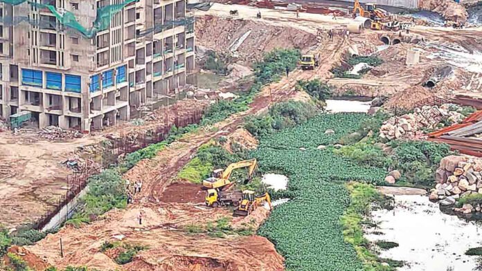 – చెరువు ఎఫ్ టి ఎల్ బఫర్ జోన్లో నిర్మాణాలు కొనసాగుతున్నాయి అంటూ..
